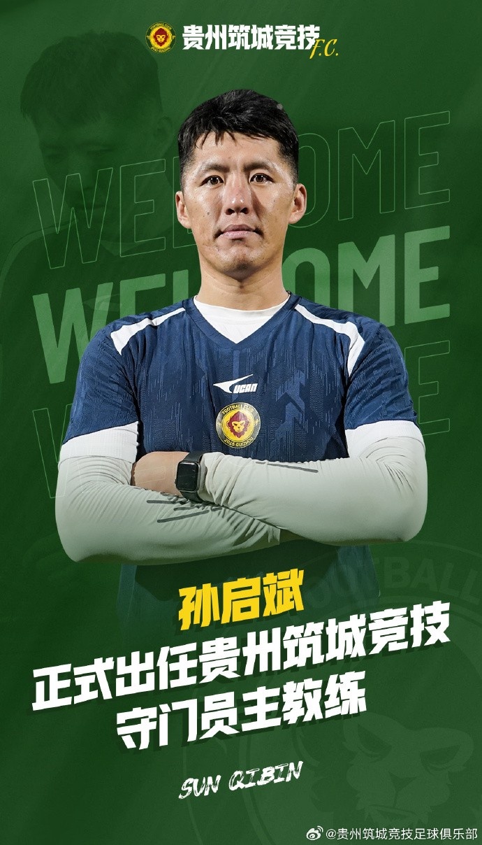 贵州筑城竞技足球俱乐部与孙启斌完成签约。即日起,孙启斌正式出任贵州筑城竞技足球俱乐部守门员教练一职。