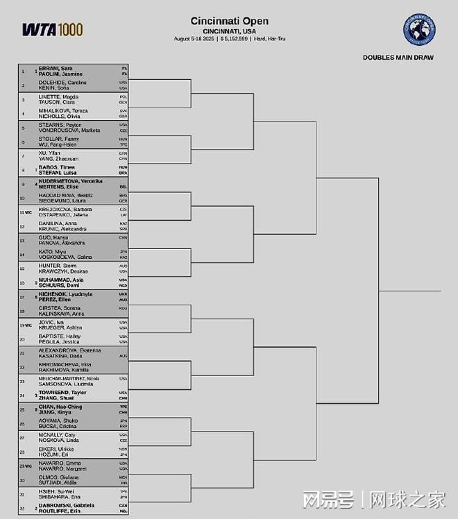 另外,WTA1000辛辛那提站的双打签表也新鲜出炉。中国有六朵金花出战,首轮对阵如下:张帅/汤森德 vs 梅里查尔/萨姆索诺娃、蒋欣玗/詹皓晴 vs 青山修子/布克沙、徐一璠/杨钊煊 vs 巴博斯/史蒂芬妮、郭涵煜/帕诺娃 vs 加藤未唯/沃斯科波耶娃。