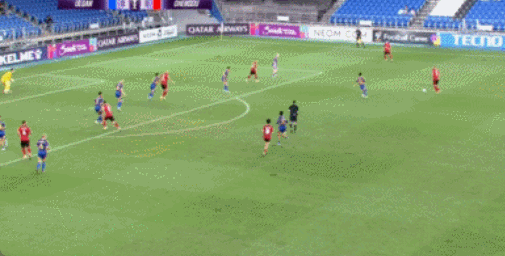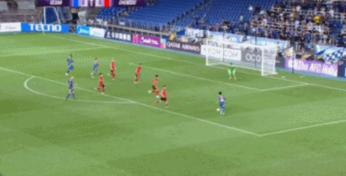 很快,蔚山HD进行了还击,一次快速反击冲击成都蓉城的后防线,马尔康前插到禁区内飞身凌空打门滑门而过,差一点直接破门。