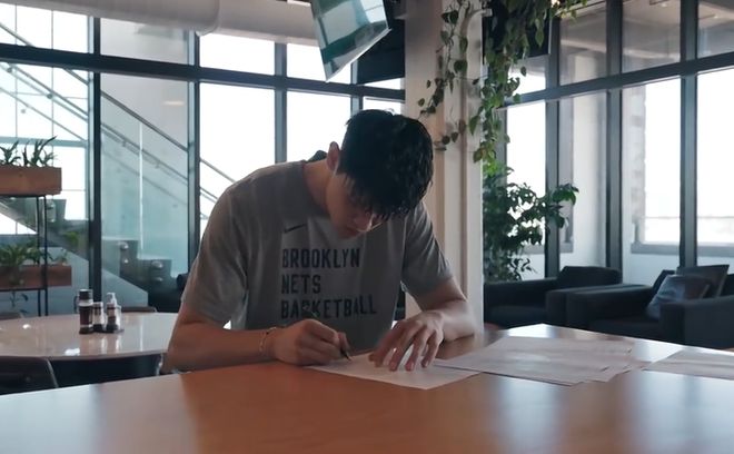 9 月 23 日,NBA 布鲁克林篮网队正式公布了球队的训练营名单,中国球员曾凡博赫然在列,他将身披 12 号球衣开启在篮网队的征程。篮网队通过社交媒体宣布:“球队今日与曾凡博完成签约。” 据悉,双方签订的是 Exhibit 10 合同。这一消息的公布,瞬间引发了国内外篮球界的广泛关注,也让众多球迷对曾凡博的未来充满期待。