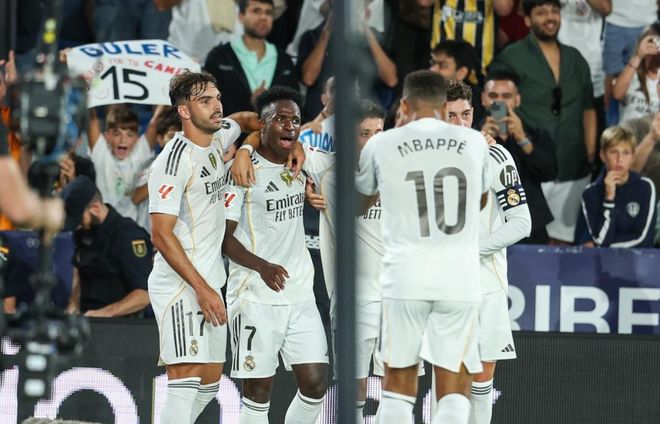 本场比赛皇马排出3421阵型。姆巴佩顶在最前面。维尼修斯和居莱尔在他身后。弗兰-加西亚、塞瓦略斯、巴尔韦德和马斯坦托诺4中场联袂出击。阿尔瓦罗-卡雷拉斯、赫伊森和劳尔-阿森西奥3后卫首发出战。库尔图瓦担任首发门将。罗德里戈、恩德里克和贝林厄姆坐在替补席待命。
