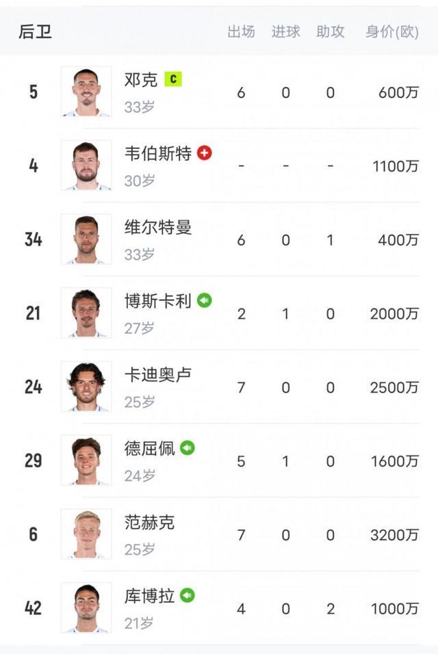 本场比赛,表现出色的有身价1400万欧的迭戈-戈麦斯、3200万欧的范赫克、1600万欧的德屈佩...