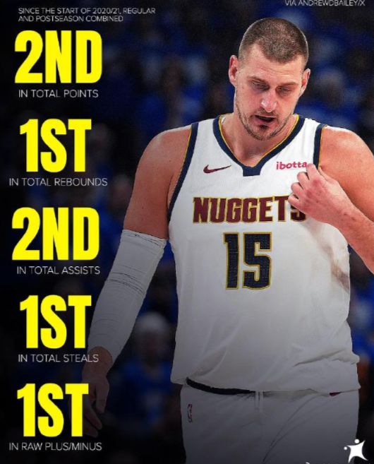 对约基奇而言,常规赛数据、风潮、模范、影响力和争相模仿已无意义。大家都知道他是本世纪乃至篮球史上进攻影响力最卓越的中锋。