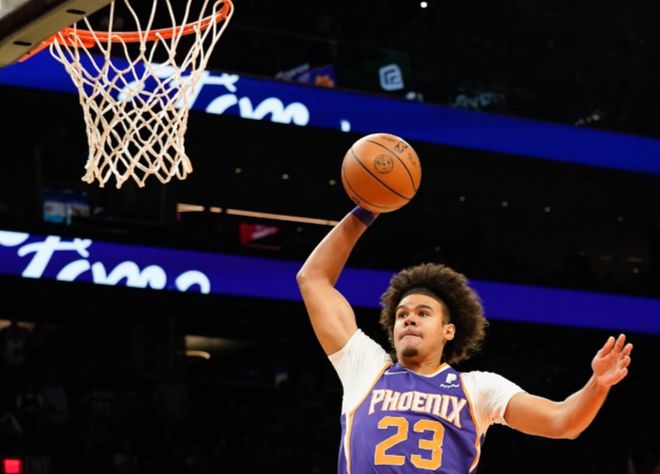 但其他诸如传球、适配、换防、轮转、卡位、副持球,卡约都比小波特好:尤其半场进攻,他比经常像个长颈鹿一样格格不入的小波特要万金油得多。上季网队的比赛,经常有这种感觉: