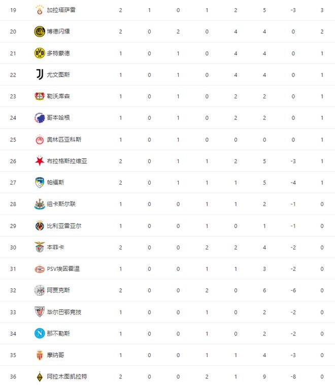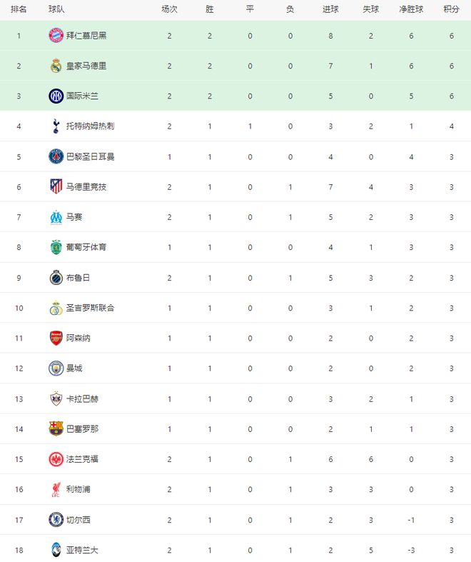 随着皇马50,拜仁51,欧冠最新积分榜:利物浦01输球跌至第16