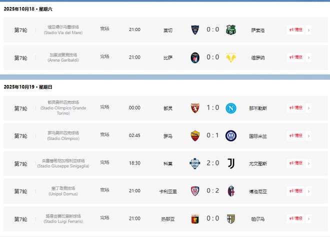 雷速体育10月19日宣 意甲目前在进行第七轮的争夺,而如今已经完赛的7场,14支球队加起来只打进了6个进球。