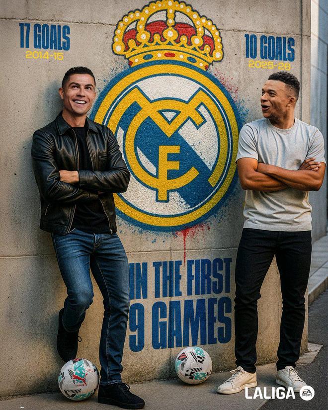 - 西甲 | 自C罗以来,姆巴佩是首位西甲赛季前9场进球上双的皇马球员