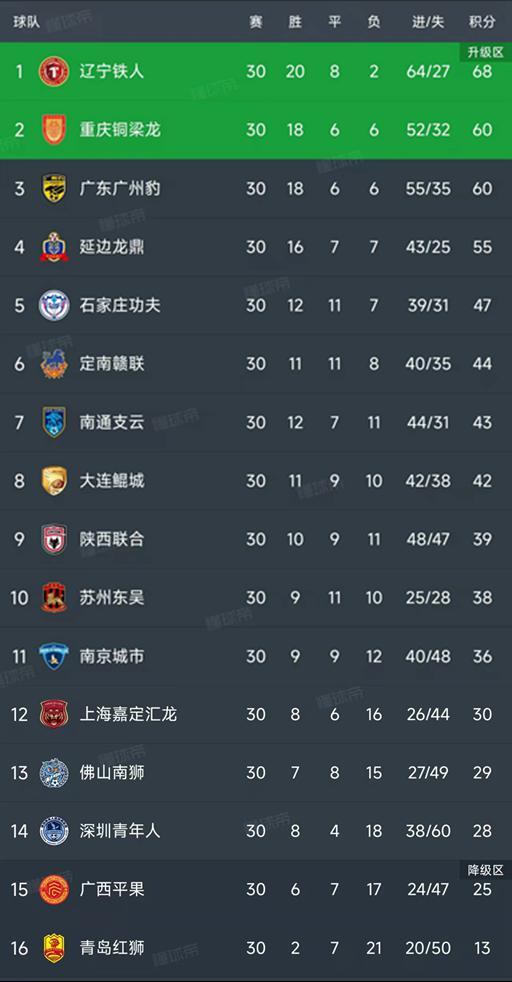 中甲第30轮的比赛全部结束,最新积分榜如下!