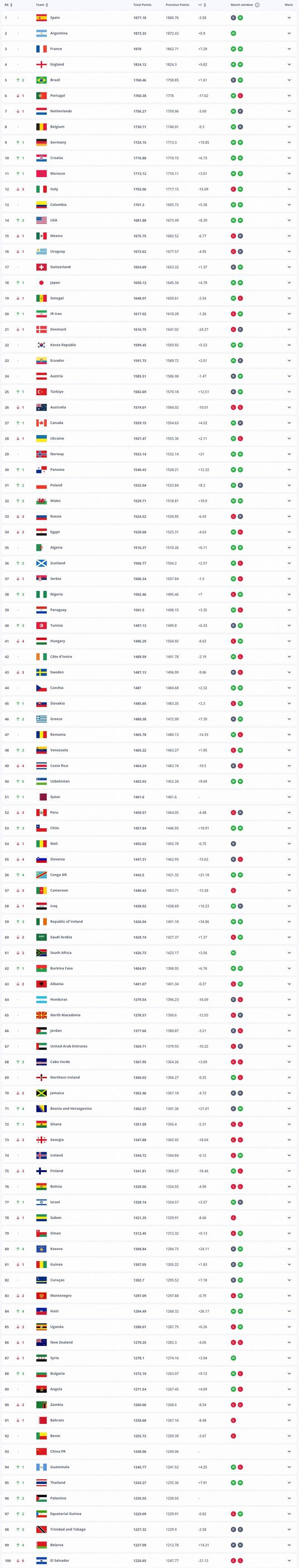 - 英超 | FIFA最新世界排名:西阿法英巴葡荷比德锁定世界杯种子队中国仍居第93