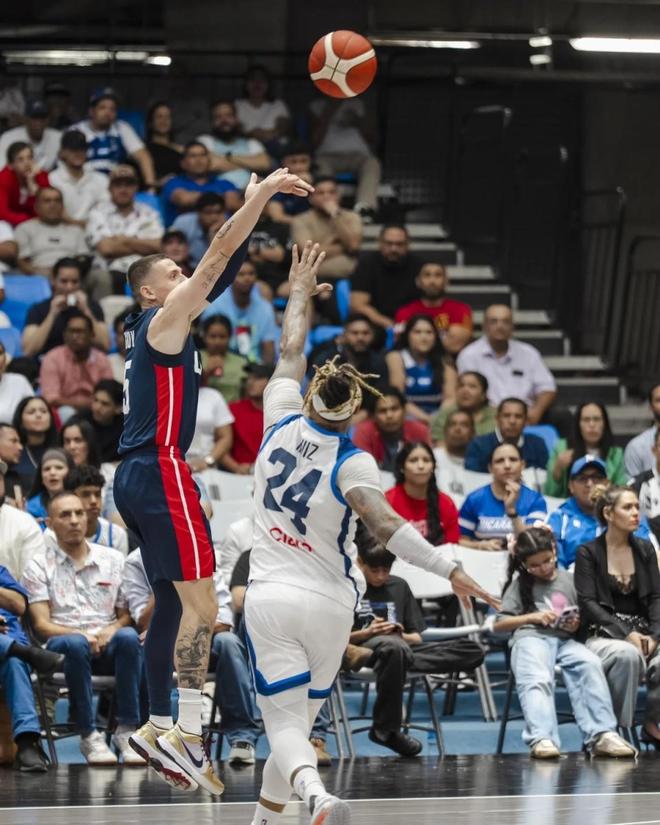 本场面对与尼加拉瓜男篮的对决,美国男篮首节就火力全开,轰下本场两队唯一一次单节30+得分,首节结束美国男篮已经取得31-20领先11分优势。第二节比赛,美国男篮继续攻防压制,他们单节28-18净胜10分,上半场结束美国男篮已经扩大59-38领先21分优势。