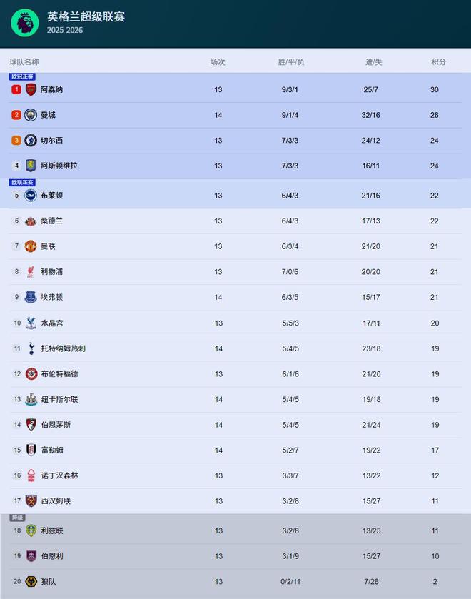 随着本场比赛的结束,曼城在多赛一场的情况下,和领头羊阿森纳的积分差距缩小到了2分。