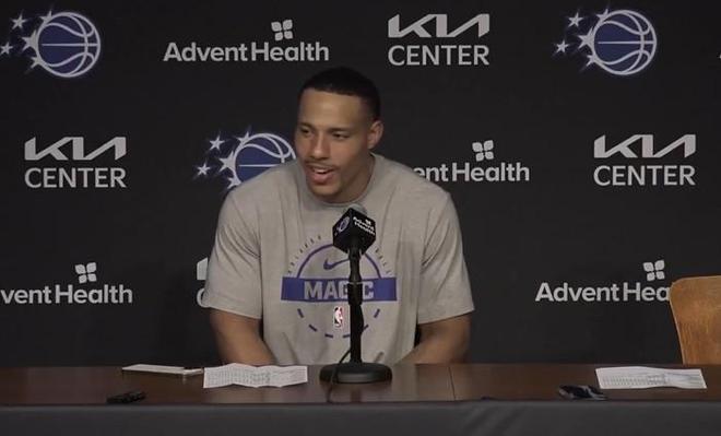 赛后,本场发挥出色的魔术后卫戴斯蒙德-贝恩出席了发布会,他谈到了晋级四强的感受。