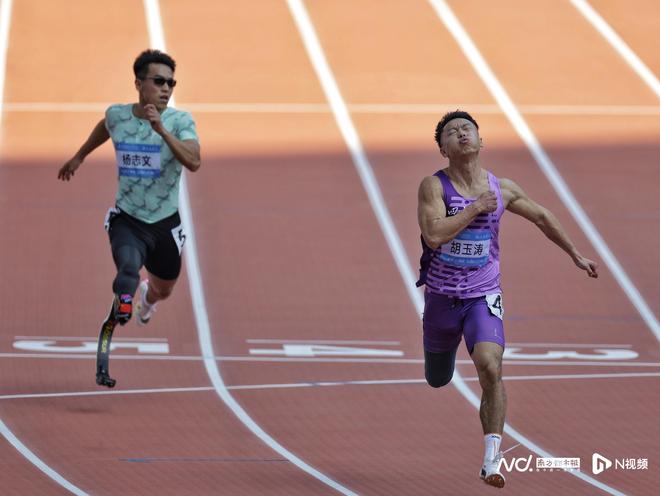 女子400米T47级决赛,当天恰好过生日的河南选手李露庆祝夺冠。