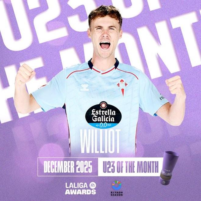 - 西甲 | 3场3球,塞尔塔前锋斯韦德贝里当选西甲12月最佳U23球员