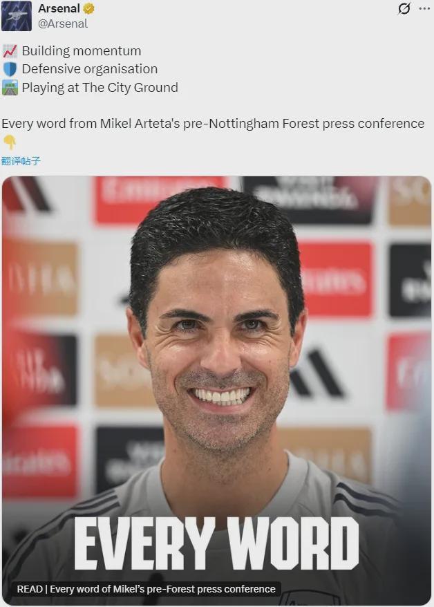 哲阿尔特塔出席了赛前新闻发布会,我们来看看阿森纳主帅的发言。