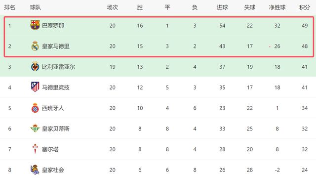 - 西甲 | 西甲第20轮结束了9场比赛,最新积分榜如下!